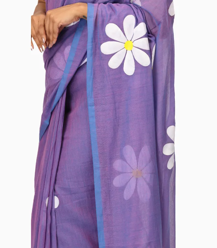 Hastkala Light Purple Handpainted Pure Mulmul Saree With Running Blouse